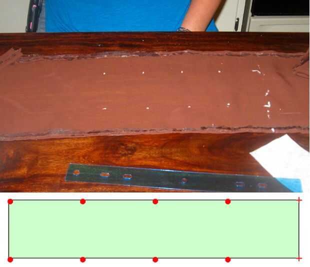Comenzar en cualquier borde corto de la superficie determinada en el paso 6 (con las "líneas laterales" en el gráfico de la instrucción de ese paso) y marcar las esquinas; medir hacia fuera 2-½" y hacer marcas de referencia en los bordes superior e inferior (largos) de la zona. Medición de las marcas anteriores, mida 2-½" y otra vez hacer marcas en los bordes superior e inferior; Repita para toda la longitud de la zona, terminando con las dos esquinas del lado corto opuesto.