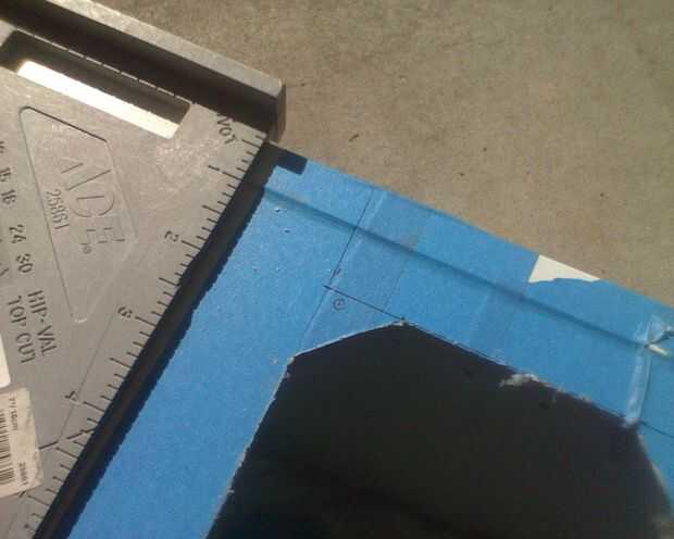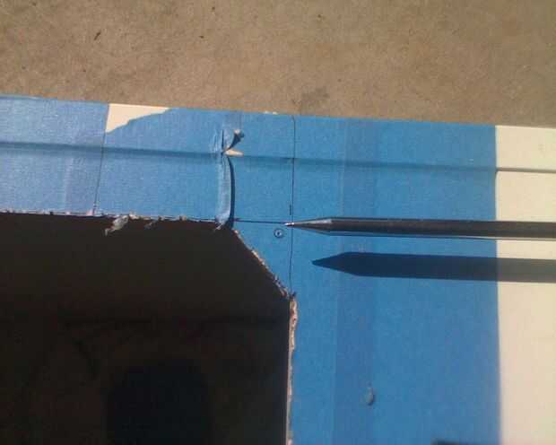 Luego usé la parrilla y la plaza para marcar los agujeros para el perno.  Asegurarse de que todas las líneas de corte fueron cubiertas.  Utilizado un punzón para asegurarse de que el agujero sea donde quería y no deslizamiento en la superficie durante la perforación.