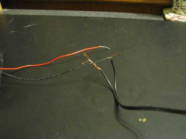 Ahora tome el adaptador de 12 voltios y hacer lo mismo, cortando el extremo pequeño. Que desee el enchufe y como mucho alambre como posiblemente puedas obtener. Al igual que los cables del ventilador, tira de los extremos aproximadamente 1/4 de pulgada.