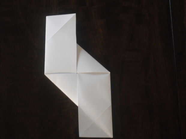 Después de eso, repetir el último paso excepto usando la esquina inferior izquierda esta vez. Pliegue la esquina inferior izquierda en el bolsillo pequeño que se parece a la imagen