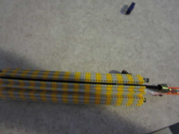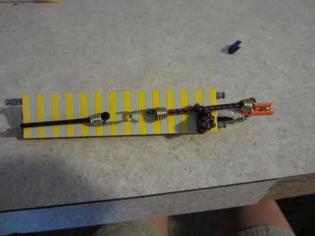 Esta parte es bastante fácil solo lazo bungee alrededor de la pieza naranja y luego desde allí hasta el fondo del cañón. Uno de sus acordes de bungee atar 6 veces en el medio para acortar un poco.