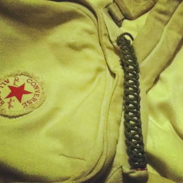 Todo el mundo ama a envolver cosas en paracord ahora tienes razón práctica. Todo lo hice fue envolver una correa de ajuste de nylon de 6 pies en 100 pies de paracord utilizando el nudo básico "cobra". Ajusté la correa para largo antes de embalaj