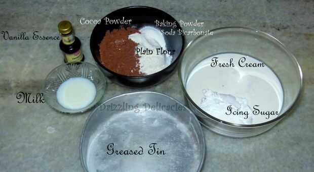 1 taza de harina, 3/4 taza de azúcar glas, nata cocinar 3/4 taza, 1/2 taza de cacao en polvo, 1/4 taza leche, 1/2 cucharadita de esencia de vainilla, 1 cucharadita de polvo de hornear, 1 pizca de bicarbonato, adicional: Oreo galletas y helado de Chocolate