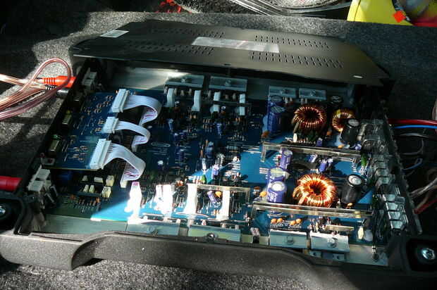 Lo primero es lo primero, he reinstalado mi amp boca abajo ya que no hay ninguna ventilación desde la parte superior. La parte inferior tiene aberturas por lo debe ayudar un poco así. Usted debe probablemente como medida de precaución, retire la potencia de la batería primero. como ves no lo hice, pero soy muy precavida. Retire la placa trasera. debe ser 5 o 6 tornillos de cabeza phillips.