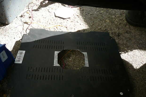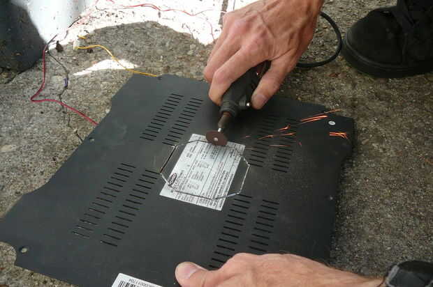 También asegúrese de que usted elimine las rebabas de los bordes para evitar metal suelto cayendo en su amplificador. Perforar su cuidadosamente para que alinee con el ventilador.
