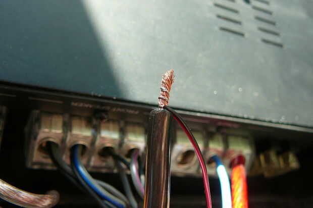 retire su wire(black) tierra del amplificador. tuerza el cable negativo del ventilador (negro o a veces rayas negros y rojos) a la tierra que usted acaba de quitar. ahora vuelva a colocar los dos alambres torcidos en el amplificador.