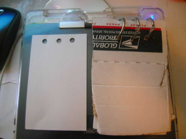 Nota: Si desea que un cartón de "cubierta", corte otra pieza exactamente del mismo tamaño que la tarjeta de índice. Luego perforar agujeros en él al igual que la tarjeta de índice y uso para la cubierta.