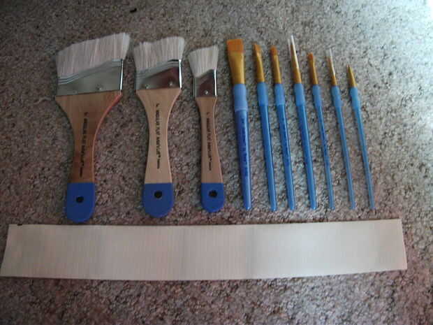 Las dos piezas de la caja se crean poniendo tiras de cinta adhesiva encima de la otra, asegúrese de dejar algunos cinta en los extremos (se muestra en la imagen). Empezar haciendo que la pieza principal del caso, esto debe ser más grande y luego el cepillo más alto y más amplio luego de todos los cepillos combinaron. A continuación, hacer la pieza que cubre los mangos de los cepillos, esta pieza debe ser más larga que la pieza principal.
