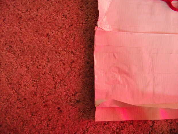 Alinee la parte inferior de ambas piezas y doblar un trozo de cinta a lo largo del borde para mantener en su lugar.