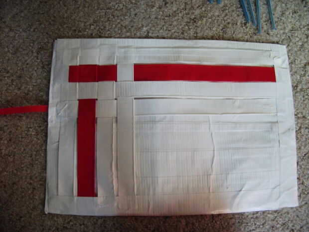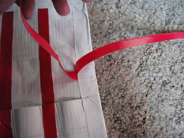 El exterior de la cubierta puede ser personalizado a tu propio estilo personal. Puede poner al azar tiras de cinta adhesiva en la parte superior, hacer letras, o de tejido como yo lo hice. Cuando haya terminado diseño elegir un lado de la caja que desea ser en el exterior y unas pequeñas tiras de cinta allí, estos servirán como los lazos. A continuación, coloque cinta en los bordes para tapar los bordes, cinta sobre los lazos y fijar el conjunto un poco más.