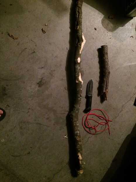 Palo sobre 3-4 pies de largo, bastón, cuchillo que maneja puede extraerse y 5 pies de paranoico.