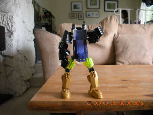 esto es el mech cuando está completamente construido.Paso 1: paso 1-4 Primero tome una nueva parte del cuerpo de bionicle con bola conjunta en medio. luego coloque las piernas de bionicle de su elección en. Luego tomar un cuerpo de bionicle serie ori