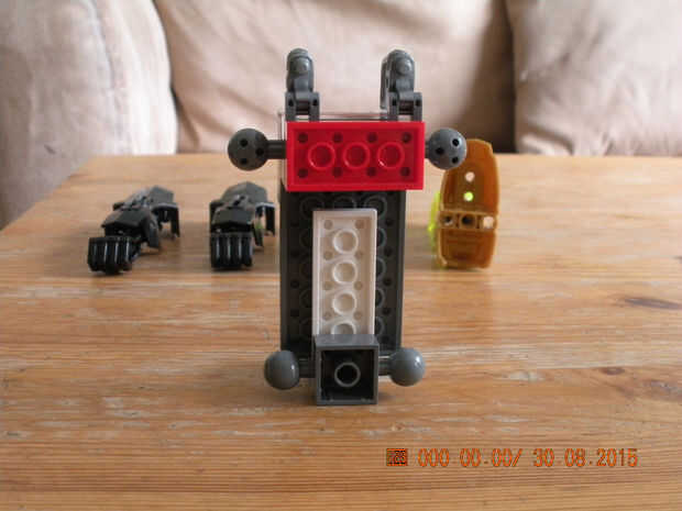 esto es el mech cuando está completamente construido.Paso 1: paso 1-4 Primero tome una nueva parte del cuerpo de bionicle con bola conjunta en medio. luego coloque las piernas de bionicle de su elección en. Luego tomar un cuerpo de bionicle serie ori