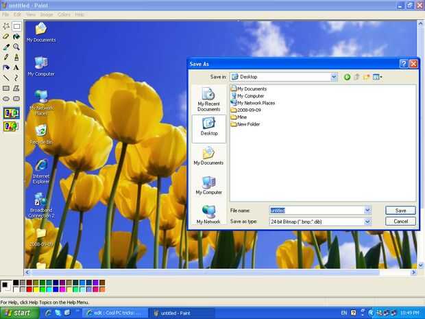 2 - guardar la imagen en tu escritorio: Inicio > todos los programas > accesorios > pintura: pegar > Archivo > Guardar como.