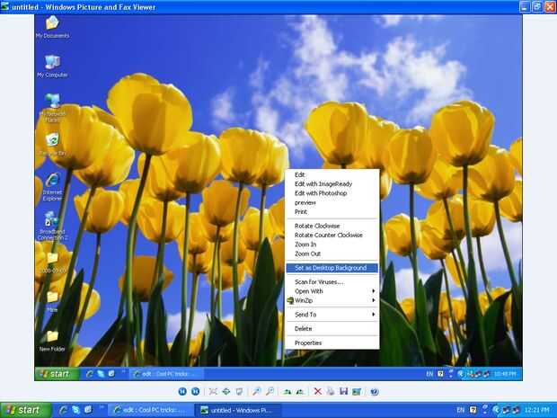 a continuación, tienes que abrir la imagen guardada y luego ponerlo como tu fondo de escritorio: