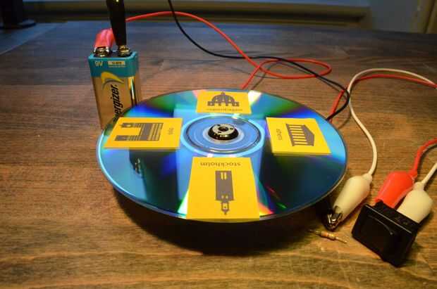 Ahora conseguir cuatro puntos de referencia y lugar en el disco como se muestra en las fotos. Mueva el interruptor y deje que el zumbido te llene los oídos.