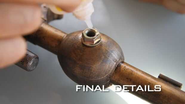 Con más artículos que encontré en el cajón de piezas luego pegado a las armas como resaltar/destacar artículos. Se decidió agregar en ultimo como mejor se ven sin pintar. Algunas de las cosas que encuentra y usa eran pequeños globos de luz, partes de relojes, tuercas, monturas de goma, abrazaderas de cable y manguera.