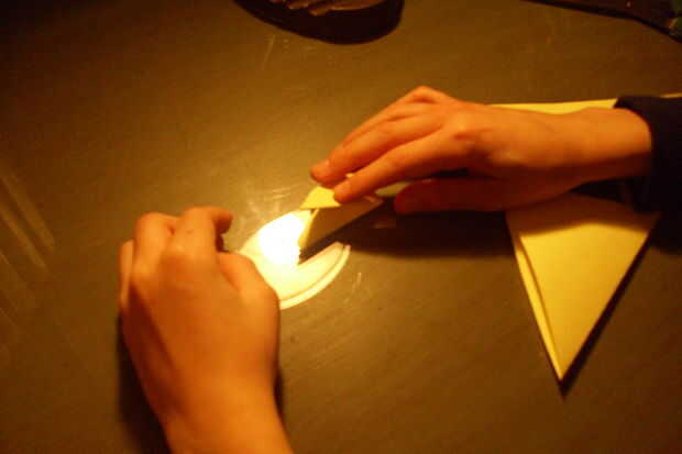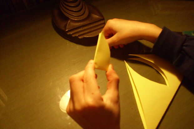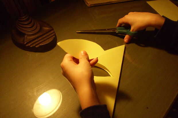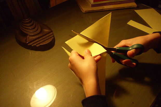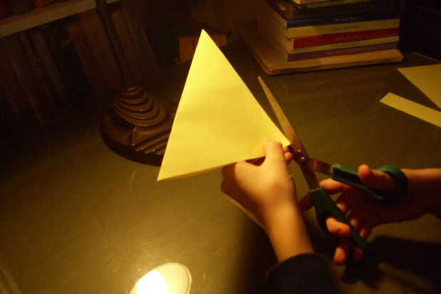 Luego se recorta alrededor del triángulo para que tengas un bonito triángulo doblado.