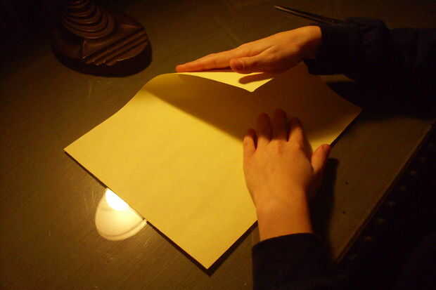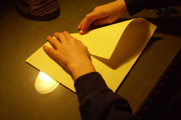 Luego usted dobla las hojas por la mitad y luego por la mitad otra vez.