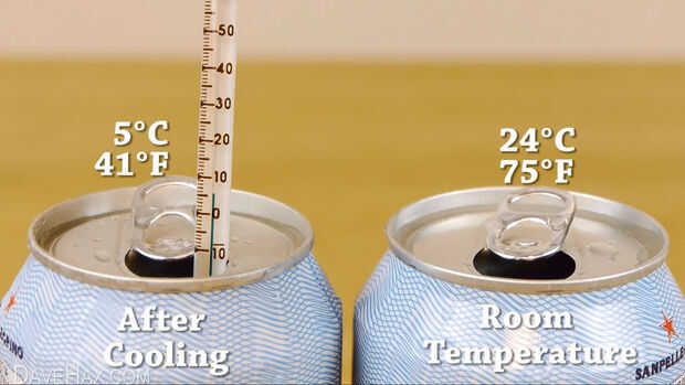 Si como usted puede monitorear la temperatura cambio comprobando la temperatura de temperatura ambiente se puede, y comparándola con la temperatura de la lata después de su estado en la solución. Que dejó el poder en la solución por 2 minutos y encontré que la temperatura cayó de 75° F (24° C) a 41° F (5° C) que es una reducción de temperatura de 34° F o 19° C.