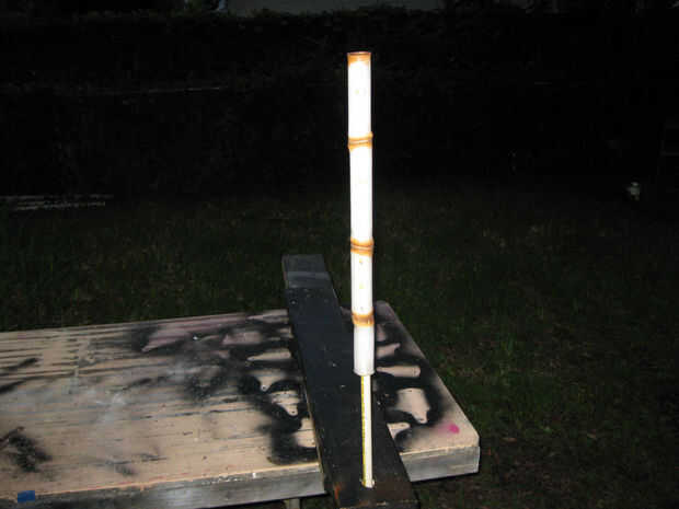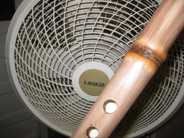 Configurar una pieza más fina de la pipa del PVC como soporte de la pintura. Esto me permitió el acceso total al exterior de la flauta. Frotó una capa muy delgada de tinta para madera roble dorado sobre la flauta entera y se deja reposar unos 30 minutos. Volví y frotó las rayas de luz en la superficie y dejar reposar otra media hora o así. Volví y había frotado varias capas de tinte, agregar manchas y rayas para el detalle. Dejo la mancha reposar varias horas antes de limpiar el exceso y poner delante de un ventilador para secar en la flauta.