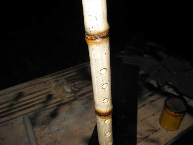 Siguiente utilicé un lápiz de pintura negra para resaltar los pliegues en los nodos. Cuando esta seco me froté la flauta todo con pinturas Rustoleum marrón. Me frotó los pliegues y los puntos bajos y pulir apagado. Hice esto varias veces hasta que la flauta todo era justo.