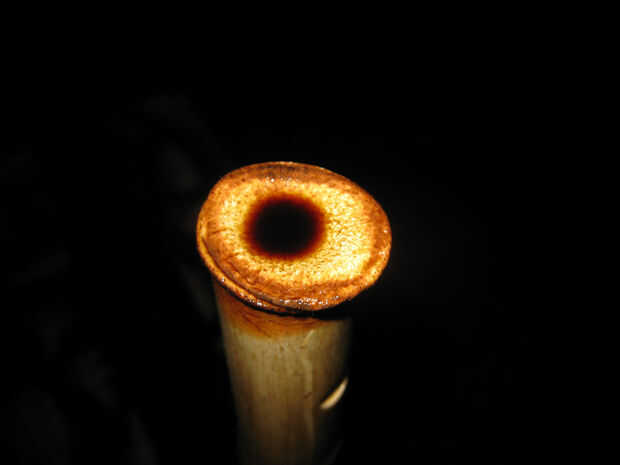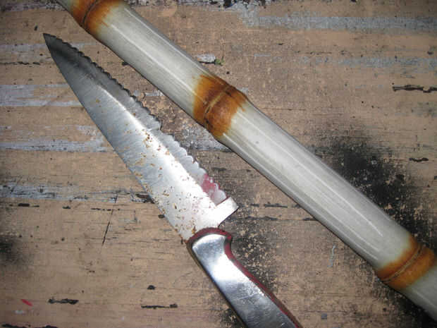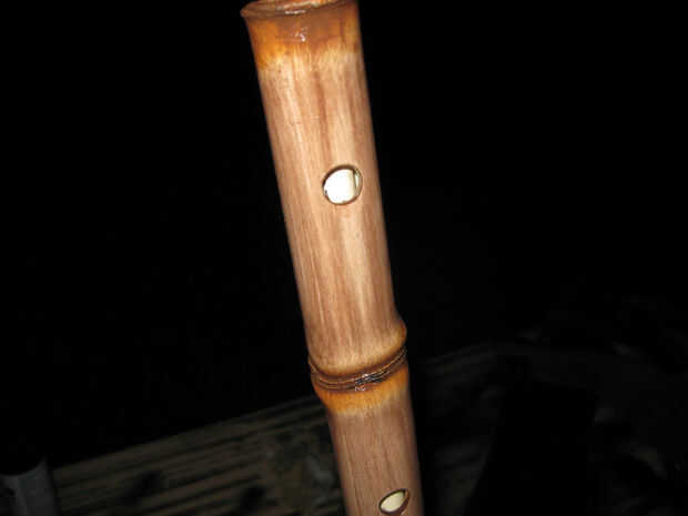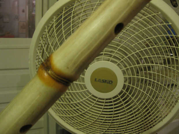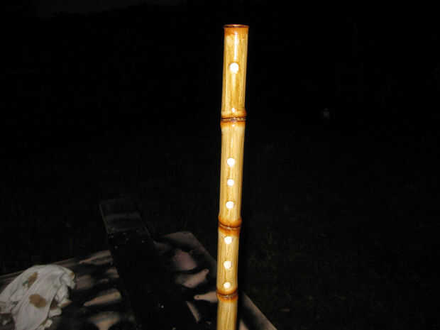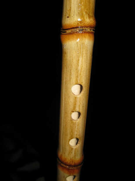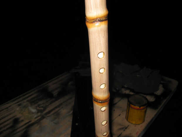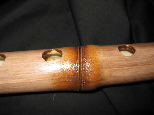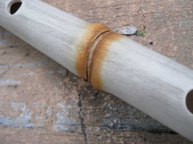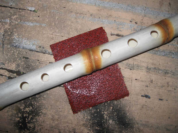 Primero dio la flauta th un ligero lijado y lija ligeras rayas en el bambú. Utilicé papel 50 grano de arena para hacer arañazos largos y un cuchillo de sierra vieja a gubia larga surcos en nodos individuales, igual real de bambú. Le di una luz final lijado para eliminar rebabas.