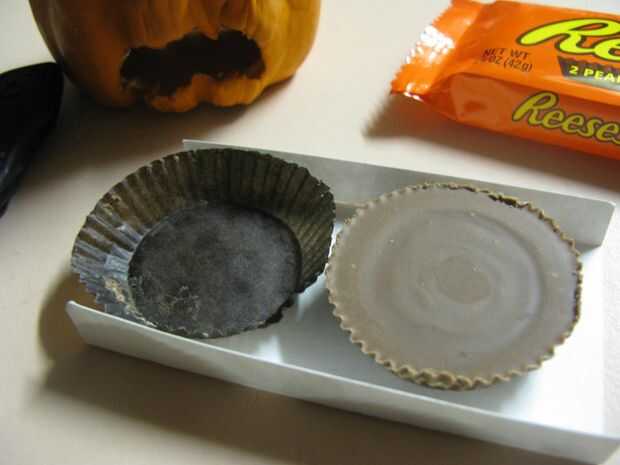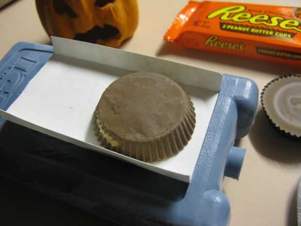2: Retire con cuidado el chocolate de la taza estriada. Coloque el chocolate al revés; la base para arriba.