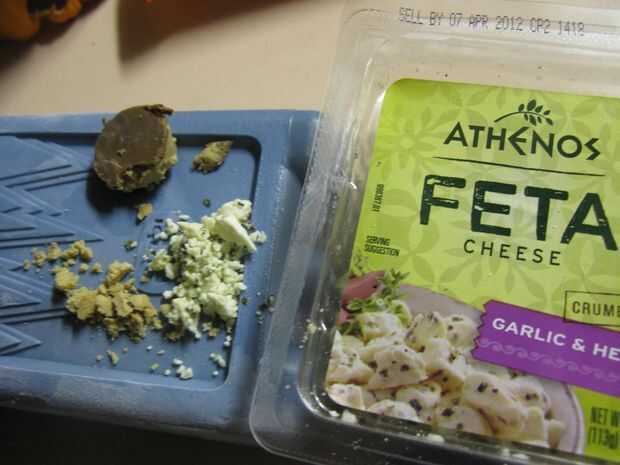 Mi broma original Reese de contiene mostaza, de un paquete. Estaba en el trabajo, en mi escritorio, así que me fui con lo que tenía. Esta vez ' ronda era casero, con una selección más amplia. Encontrar un buen ajo, feta de hierba. Yum, yum. La consistencia fue perfecta.