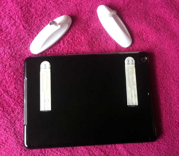-Los ganchos pueden duplicar como las piernas, poner el tablet en un ángulo conveniente.