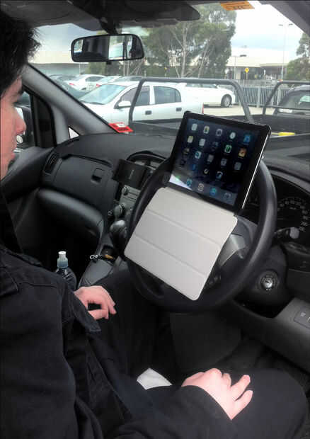 Tomar la tableta del volante y engancharlo en algún lugar fuera del camino en su vehículo cuando en el camino. No usan mientras que detuvo en el semáforo!