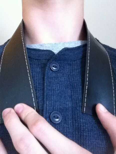 La próxima cosa que necesita hacer es averiguar la cantidad de la cinta que desea utilizar como relleno. Para ello poner el cinturón alrededor de mi cuello y a la izquierda algunas pulgadas de cinta a cada lado de mi cuello, luego recortar el exceso.