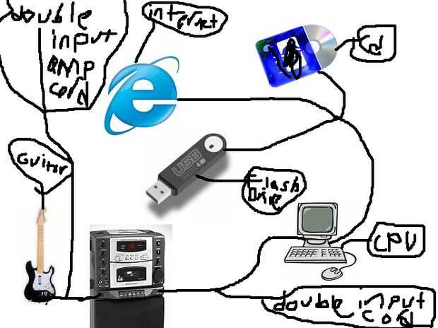 estaba muy inspirada por todos los videos de youtube de arpas láser pero encontré todo demasiado grande para traer para una jam session o necesitaban una instalación complicada y un pc etc.. Pensé en una guitarra con rayos láser en lugar de cadenas.E