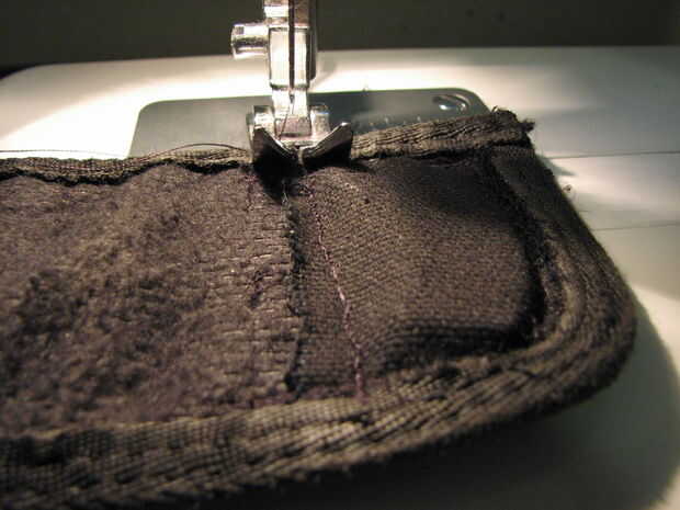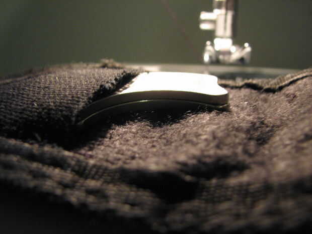 Una vez que deslice en los imanes, coser la parte inferior cerrada. Si estaba en todo paciente esto puede han trabajado mejor coser a mano. Pero, he utilizado la máquina, atascado, así que no conseguir cualquier premio de técnica. Me encontré con ajuste del aguja posición marcado fuera del centro me ha permitido mantener el pie lejos del imán. Recuerde tirar suavemente la funda entera como puntada para superar el imán se pegue a la placa de aguja. Estoy usando una "aguja de jeans", parece sostener en telas más gruesas como ésta.