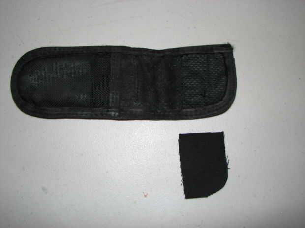 Corte un trozo de tela que empareja el contorno de la aleta y permite suficiente longitud en todas direcciones para rodear su magnet(s). Utilicé algunos desechos de pato del algodón debido a la disponibilidad, se imaginaría denim funcionaría bien. Algo fino y duro. Tela fina permite el imán para acercarse y ejercer tanta fuerza como sea posible en la herramienta, y dura así que el imán no lágrima a través como se abre la aleta.