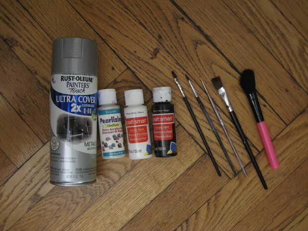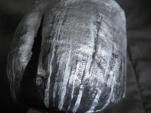 Añadir acento pintura para hacer los cascos parezca más realista. Ver imágenes de cascos para recoger a colores y patrones que te gusta. Usé las estrías blancas y negras, que pinté ligeramente sobre el uso de pinturas acrílicas y un pincel fino. Luego con una capa superior de opalina para traer más plata y opacar el negro mezclado.