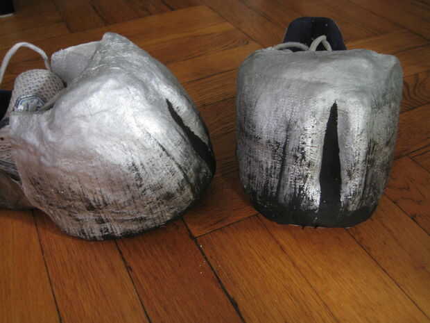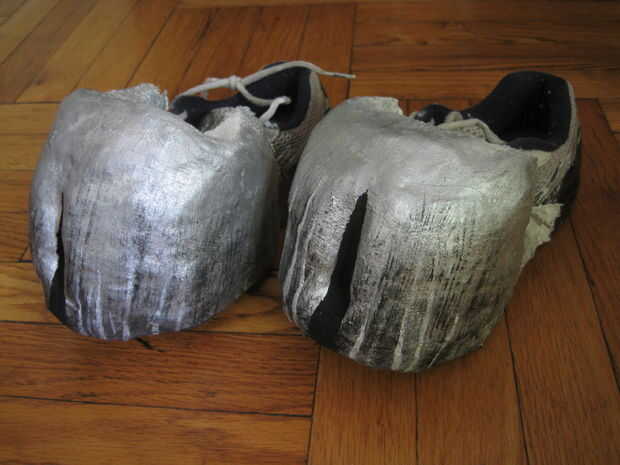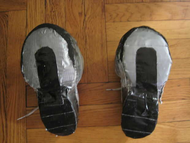 Tratar de mezclar la parte inferior de la pezuña con la parte inferior la cinta del conducto, si se puede. Lo que se vea más realista y es más fácil de reparar si es todo negro o plata.