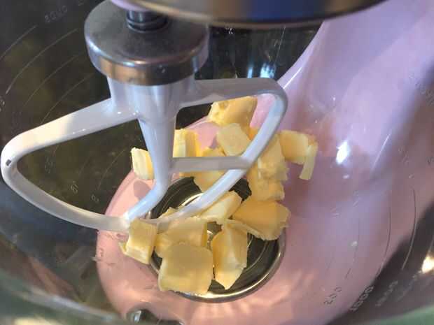 La primera cosa a hacer es hacer un lote grande de masa de cupcake por batir la mantequilla sin sal (113g) en el cocina ayuda mezclador hasta que la mantequilla esté liviana y esponjosa. Luego agregar 1 taza de azúcar impalpable y continuar a batir hasta ligero y mullido. Luego añadir la pasta de vainilla y el huevo a la mantequilla y la crema y siga para ganarles.