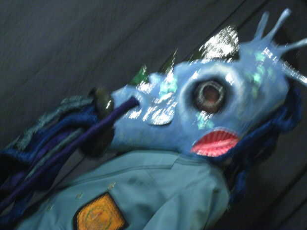 A pesar de la decepción anticipada de nadie saber "lo que debo ser", que se cumplió en gran parte, era todo pena debido a un joven que corría hacia atrás cruzando la calle a fotografiar mi traje. Mientras se preparaba tomar la fotografía, ella notó el parche y se inclinó en leerlo. "Innsmouth?!", dijo. "Dios te bendiga, Señor!" Ella hizo segura de obtener un primer plano del bordado antes dejó.