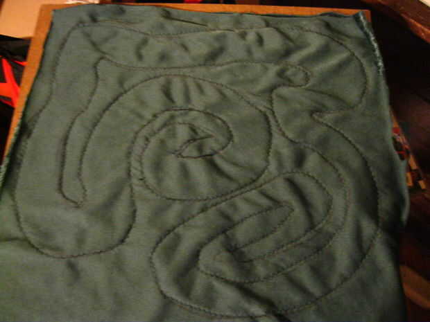 Tomé un gran rectángulo de terciopelo y dobla en una plaza. Utilizando un marcador, dibujó un tentáculo rizado y había cosido encima. Cuando lo relleno y lo colgó de la máscara, estaba tan contento con el efecto que terminé haciendo más de lo que originalmente tenía la intención!