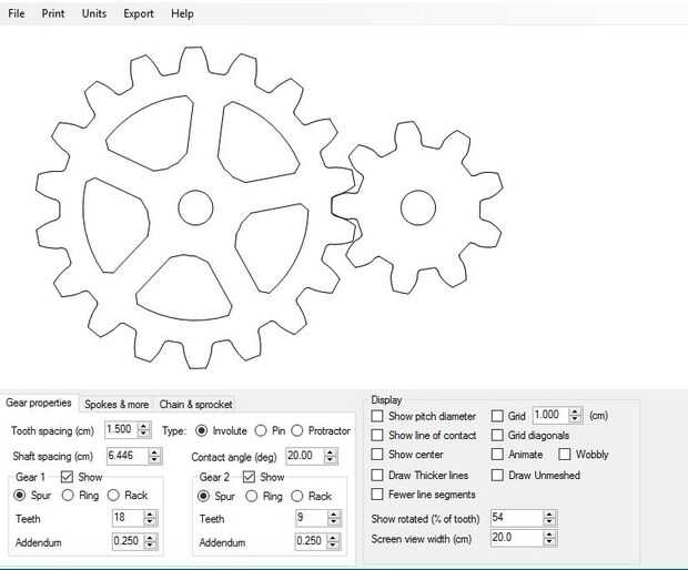 1. Establecer los diámetros de ambos engranajes a 1cm.
