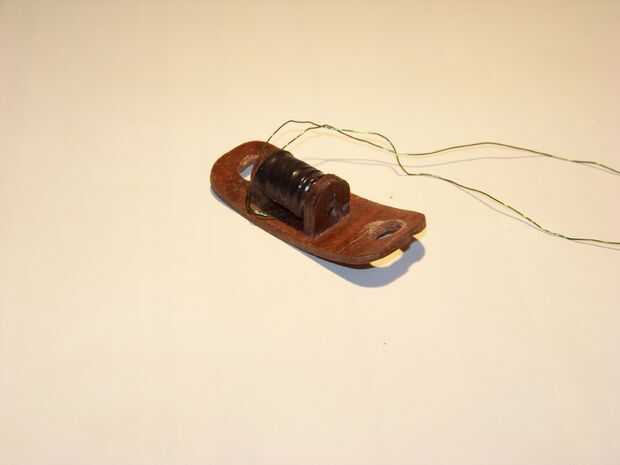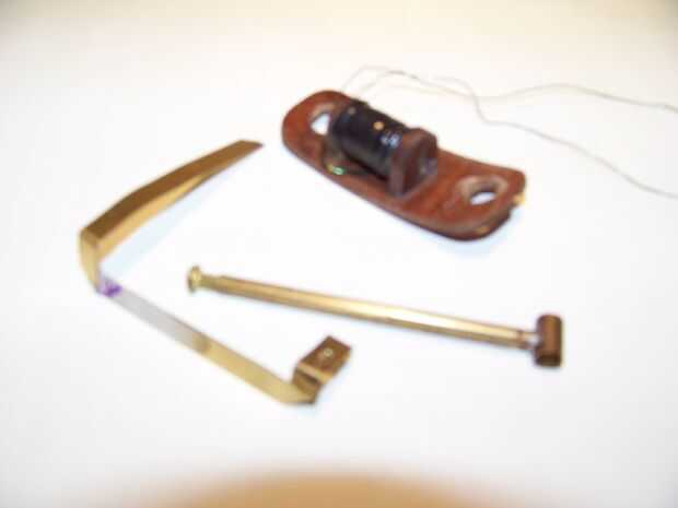 Este reloj es accionado por un electroimán sencillo, su hizo con la chapa, un trozo de varilla de 3/16 de acero y alambre del imán, es encendido y apagado de un interruptor deslizante de latón, que se hace de un trozo de tubo de cobre de 3/16 y 1/4 x 1/32 latón barra plana. Un cable desde el electroimán se conecta a un lado del interruptor, el otro cable va al negativo de la batería y el otro lado del interruptor tiene un cable que va hacia el lado positivo de la batería. Realmente no cuento las vueltas de alambre, sólo seguí bobina hasta que era casi tan grande como las tapas.