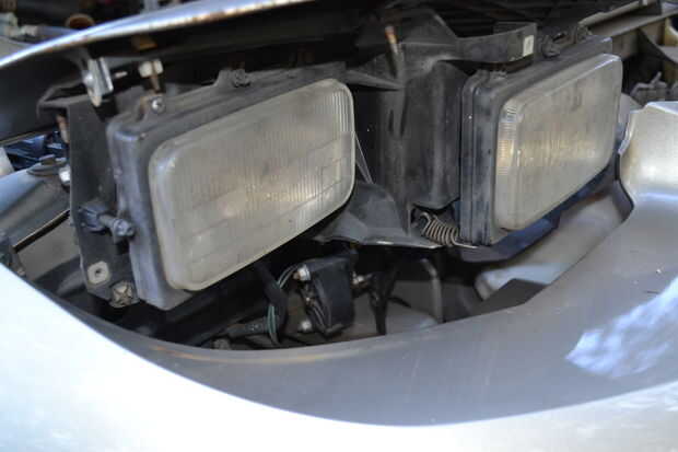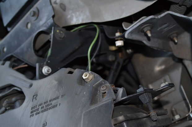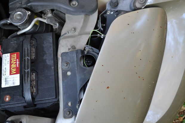4. Desmonte el motor de la linterna (3 pernos, 3 tuercas). Una vez más, estas son 10 mm. Verás dos cerca de la parte delantera del coche y son fáciles de quitar. El es la parte de atrás es un oso. Si usted tiene una extensión de toma creo que se puede llegar de esa manera pero en mi caso preferí usar dos llaves de 10 mm.