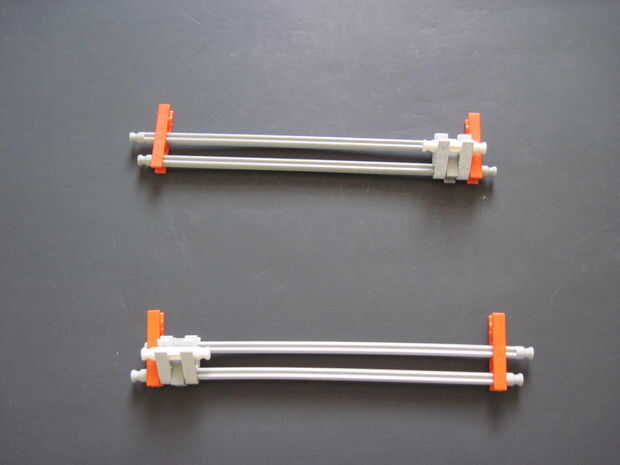 Imagen 3: Agregar pequeños engranajes, varillas gris y Y clips en los extremos de las barras grises en la imagen.
