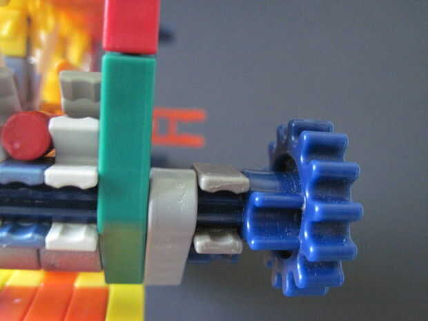 Imágenes 10-12: en el otro lado acople conector gris y clip tan pequeño engranaje.