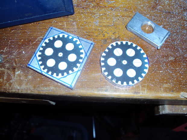 Esta vez decidí utilizar una sierra de cinta artesano viejo tengo frm mi padre hace años... diez dólares me puso una hoja para cortar. Decidí la sierra sería más rápido y quería hacerlos rápidamente sólo para ver si lo prefiere aluminio en mis botas o de latón los. Empecé por recortar la parte exterior de la patern haciendo un círculo en etapas. Hacer una forma de octágono, luego cuidadosamente quitar más material utilizando pequeños cortes rectos (sierra no ajustados cortes curvos, y nadie tenía localmente metal cortar hojas para mi sierra, sin les.