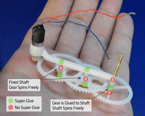 - Ensamble la caja de engranajes y pruebe girando alrededor. Aquí podrá Dile qué partes necesitan relleno hacia abajo, que se puede mientras se monta la caja.