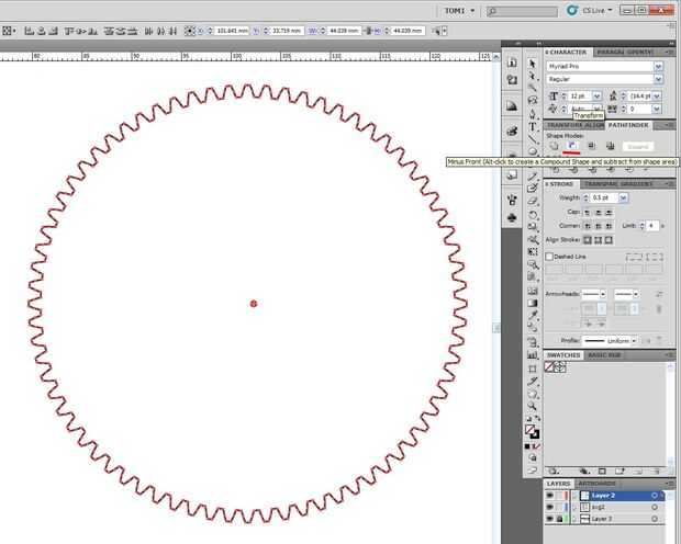 - Seleccione el equipo y el nuevo círculo y haga clic en el botón restar de "Conquistadores". Esto cortará el camino del círculo fuera de la trayectoria del equipo.