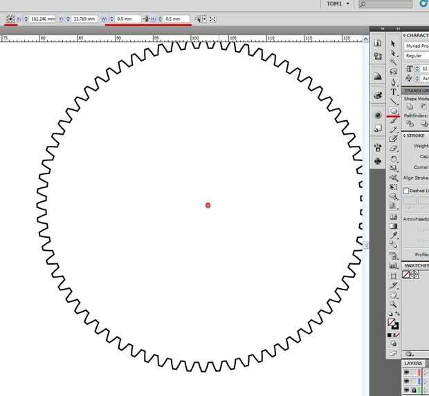 - Corte un agujero central de la marcha mediante la herramienta de círculo para crear un círculo en el centro de la marcha (vuelta guías inteligentes en complemento al centro.) Utilizar las propiedades del objeto para establecer el radio del círculo en mm 25.