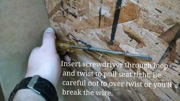 necesitaba un método para fijar el amortiguador al cuadro. Terminé haciendo esto con el alambre. Era una forma barata y eficaz para hacer este paso. Cuando estaba terminado los cojines eran sólida como una roca.